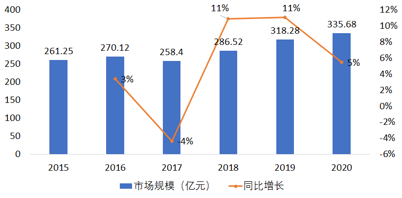 2020年,我國(guó)半導(dǎo)體制冷片市場(chǎng)規(guī)模達(dá)到335.68億元,受疫情影響同比增長(zhǎng)僅達(dá)到5%。