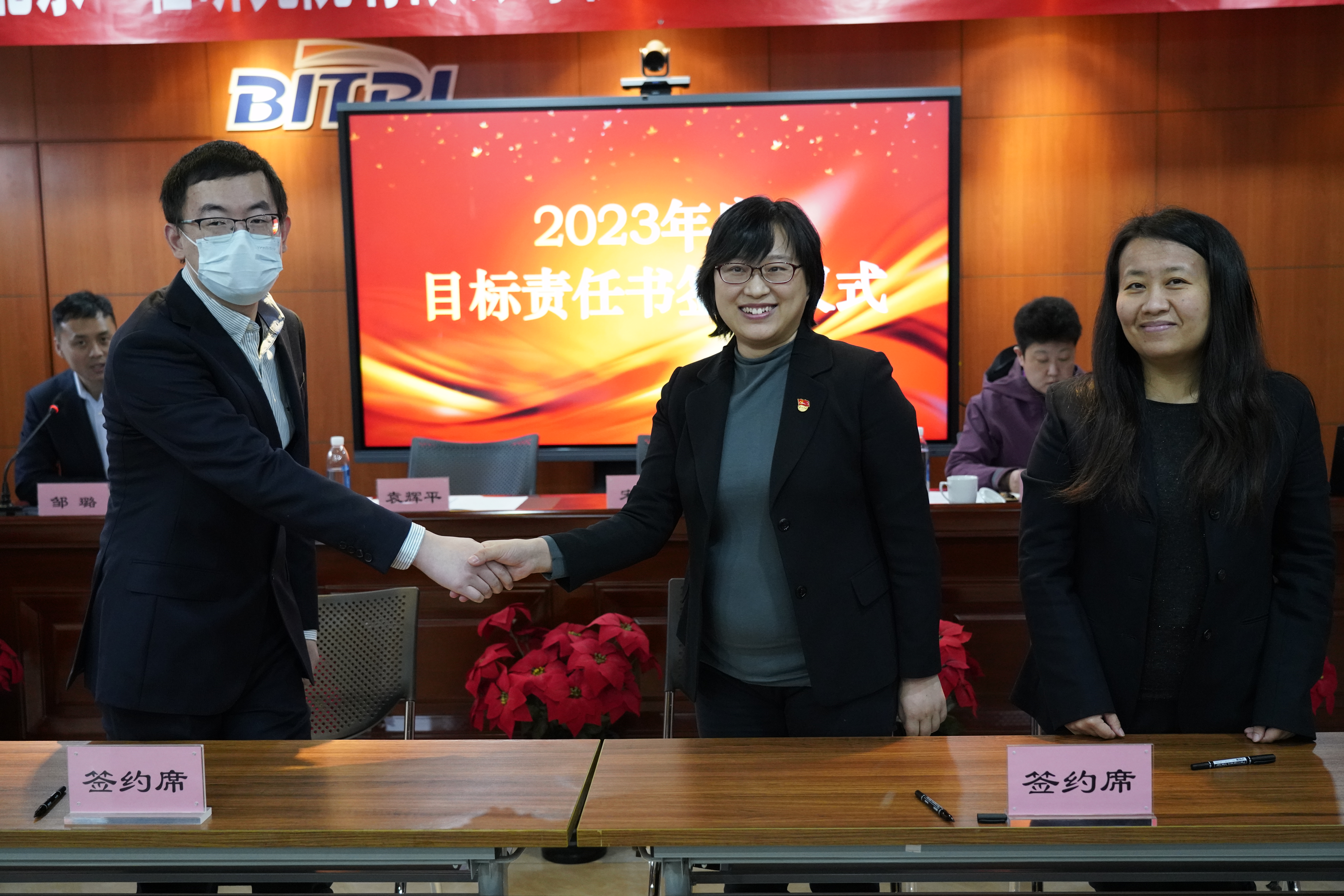 會上黨支部書記袁輝平同志、總經理宋昊同志與各單位、各部門簽訂了《2023年目標責任書》、《2023年安全工作目標管理責任書》。